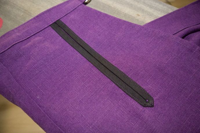 Sivusauman ompelin ohjeista poiketen alhaalta ylöspäin, sitten taitoin vain taskun osan saumavarat ja ompelin ne kiinni. Heikoimpaan kohtaan ompelin pari pistoa vähentämään rasitusta.