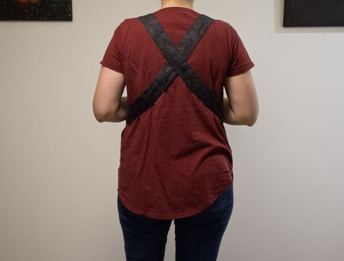 Tässä versiossa ei ole mitään solmittavia osia. Olkaimet menevät selästä ristiin ja ne on ommeltu kiinteästi esiliinan sivuihin kiinni. Katsoin netistä mallikuvia ja piirsin niiden pohjalta kaavan itse.
