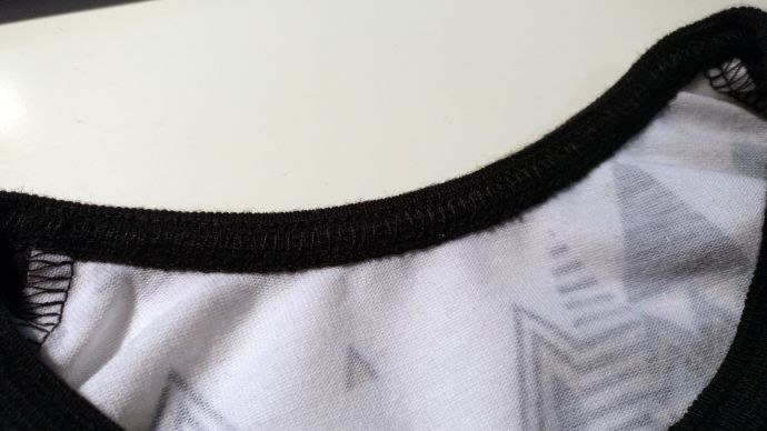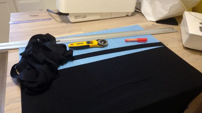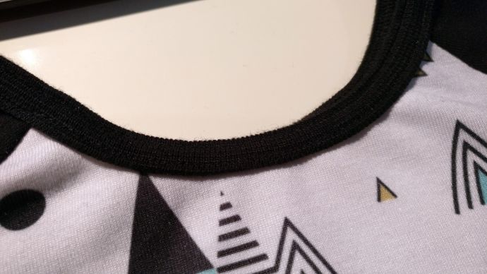 Inspiran kantinkääntäjä tekee tasan 1cm leveän kantin ja ompelu on niin ihanan helppoa. Kääntäjä venyttää resoria itse sopivan määrän, senkun vaan ompelee menemään. En usko, että kääntäjän kanssa voi tehdä resoria renkaana (ainakaan kovin helposti). Pitää opetella ompelemaan sauma niin, että resorien reunat ovat tasan. Ensimmäisessä kokeilussa vaikka kuinka huolellisesti neulasin kappaleet vastakkain, ne olivat saumuroidessa liikkuneet pari milliä erilleen. Jotkut ovat saaneet apua laittamalla yhtä paksun palan kangasta taakse paininjalan alle, mutta minulla se ei auttanut. Voi olla, että paras tapa on ommella käsin tai aputikata ompelukoneella resorin reunat kiinni ennen saumurointia.