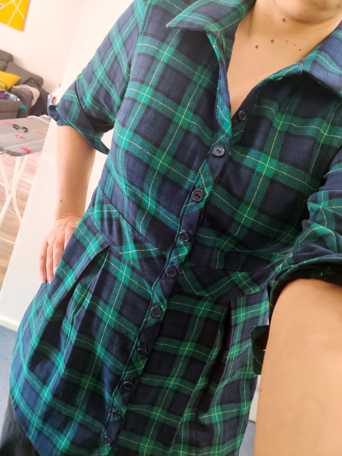 Tykkäsin edellisen kauluspaidan mallista niin paljon, että tein toisen samalla kaavalla. Tällä kertaa käytin kankaana puuvillaflanellia, jonka jouduin tilaamaan briteistä. Suomesta en vain löytänyt oikeaa kangasta.