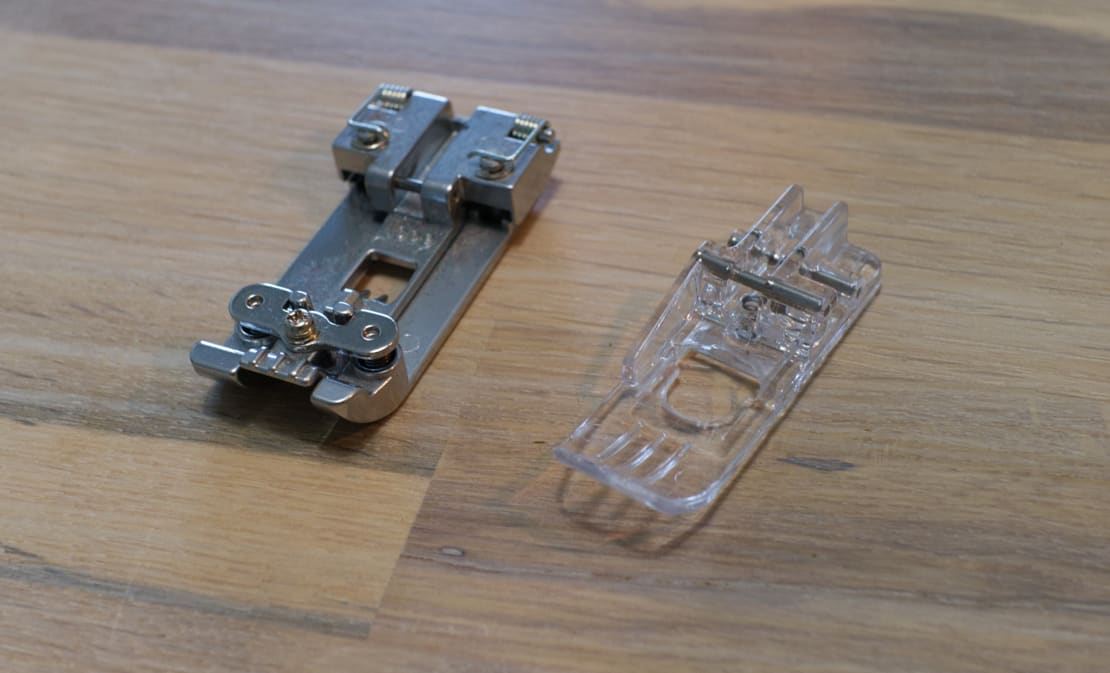 Tilasin mielenkiinnosta saksalaisesta verkkokaupasta läpinäkyvän paininjalan MCS-1500 peitetikkikoneelle. Tämä ei ole Jukin virallinen lisäosa, eikä se ole kovin laadukas.