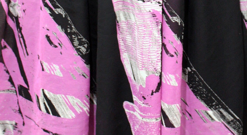 Löysin EK:n palalaarista mustaa sifonkia, jossa oli pinkkivalkoista abstraktia kuviointia yhdessä reunassa. Se näytti heti mekolta. Alunperin ajattelin maksimekkoa, mutta kangasta ei ollut riittävästi siihen.