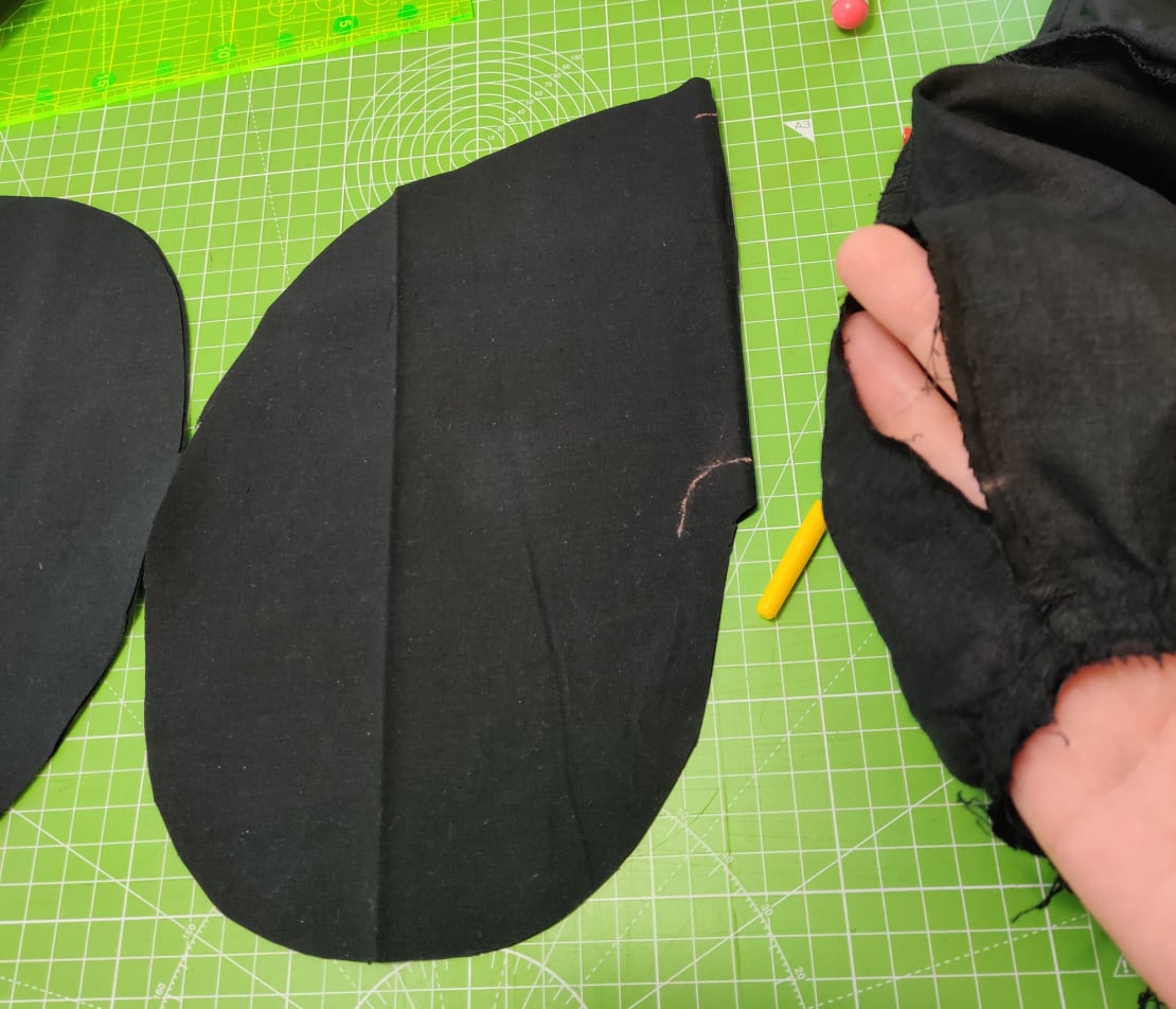 Piirsin taskun kaavan oman käden muodon mukaan ja testasin, että kännykkä mahtuu siihen. Ompelin taskut sivusaumaan ja niistä tuli oikein nätit ja hyvänkokoiset, mutta tein ison mokan. Tein taskut nimittäin puuvillaisesta lakanakankaasta, kun minulla ei sattunut olemaan muuta sillä hetkellä. Olisi pitänyt tehdä jostain paljon liukkaammasta kankaasta, koska nyt niissä on niin iso kitka että tavaroita on vaikeampi saada taskusta pois.