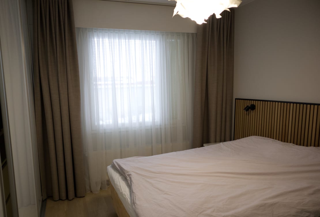 Halusin makuuhuoneeseen vähän pehmeämpää fiilistä, sen sisustus on kyllä vielä totaalisen kesken, mutta ajattelin aloittaa verhoista. Ompelin pimennysverhot jo viime kesänä, koska ilman niitä ei pysty nukkumaan, mutta sain aikaiseksi ommella valoverhot vasta nyt.